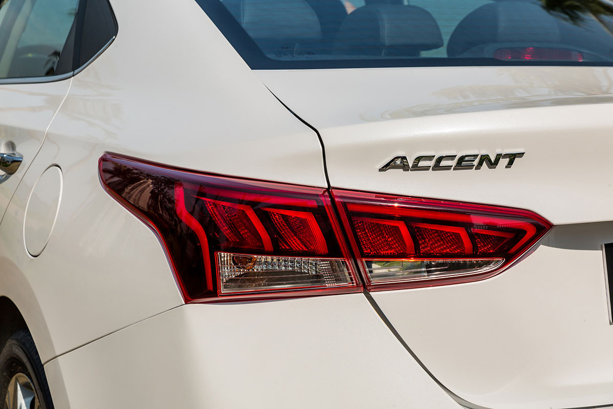Hyundai Accent 2021 có kích thước lần lượt 4.440 x 1.729 x 1.470 mm, chiều dài cơ sở 2.600 mm. Những nâng cấp mới trên mẫu xe này đến từ bộ lưới tản nhiệt hình thang ngược dạng mắc xích cá tính, cụm đèn chiếu sáng projector cũng ấn tượng và sắc nét và góc cạnh hơn khi được vuốt ngược ra phía sau theo hình lưỡi liềm độc đáo.