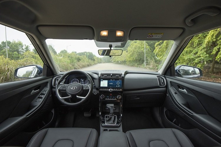 Không gian nội thất Hyundai Creta 2022 rộng rãi, sang trọng, đầy tiện nghi. Nổi bật trên táp lô là màn hình thông tin giải trí 8 inch, tương thích Apple CarPlay/Android Auto hiện đại. Vô lăng 4 chấu bọc da tích hợp phím đa chức năng tiện lợi. Phía sau đó là bảng đồng hồ kỹ thuật số màn hình màu LCD 10,25 inch, có thể thay đổi giao diện. Ghế ngồi bọc da, ghế trước ôm thân người, trên bản cao cấp còn chỉnh điện 8 hướng và làm mát.