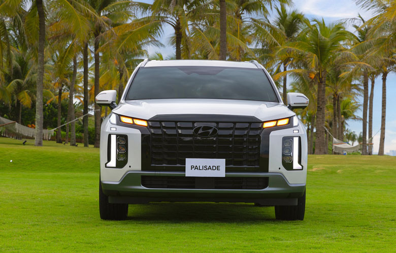 Hệ thống đèn chiếu sáng full LED Projector và đèn LED ban ngày DRL mang thiết kế T-Shape đặc trưng đặt dọc bao quanh lưới tản nhiệt, tạo thành một khối liền mạch. Chạy dọc thân xe là những đường nét thiết kế góc cạnh với nhiều chi tiết dập nổi, không chỉ có ý nghĩa về mặt thẩm mỹ mà còn gia tăng tính khí động học cho Hyundai Palisade 2023.