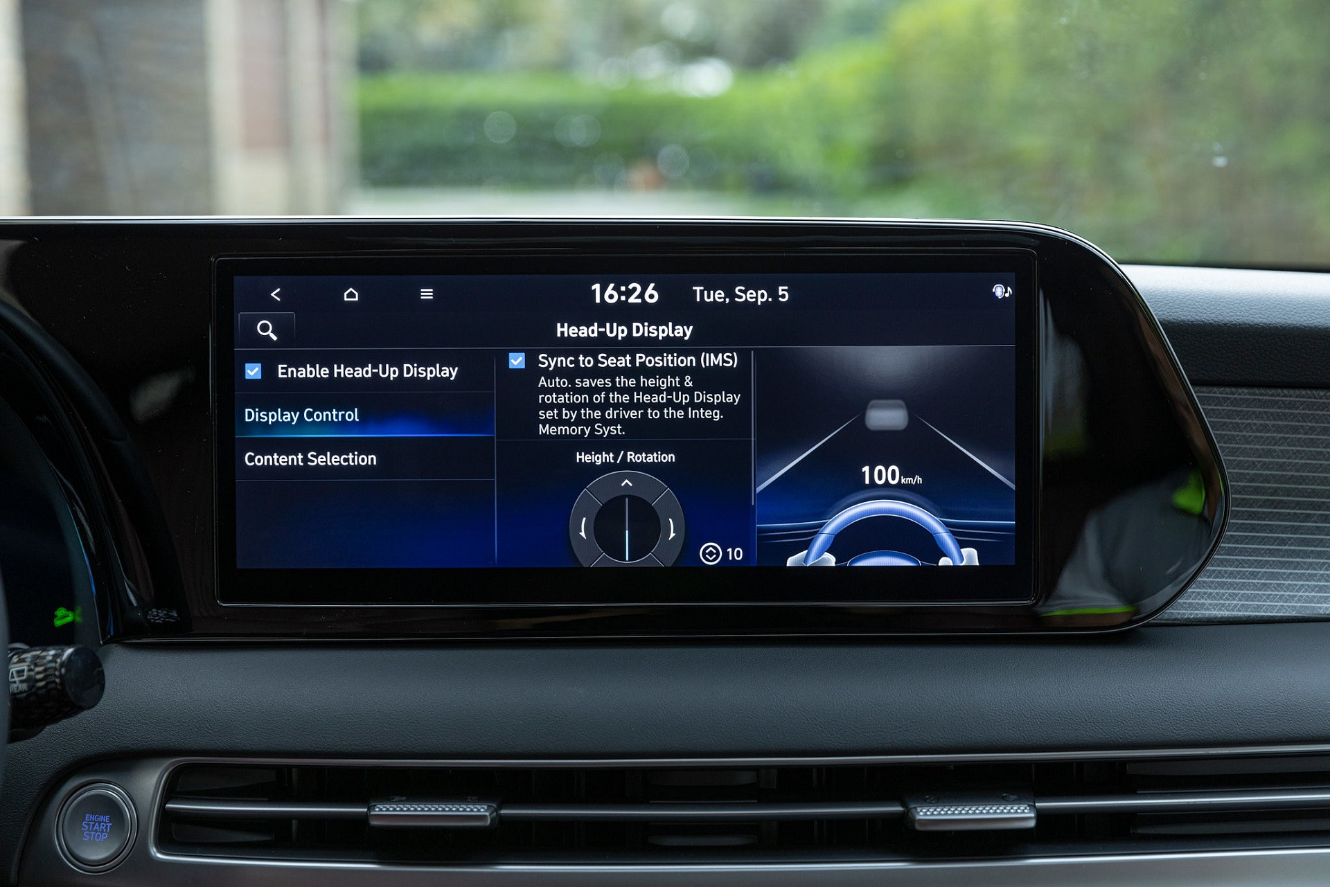 Một số tiện nghi ấn tượng khác trên xe có thể kể tới như màn hình hiển thị thông tin kính lái HUD 10 inch với độ phân giải 480p, trần xe bọc da lộn, cửa sổ trời toàn cảnh; chìa khóa thông minh, khởi động dạng nút bấm kết hợp khởi động từ xa phanh tay điện tử, cốp mở điện,rèm che nắng hàng ghế sau, cửa gió điều hòa và cổng sạc cho hàng ghế thứ 3, kính chiếu hậu chống chói điện tử ECM trong xe,…