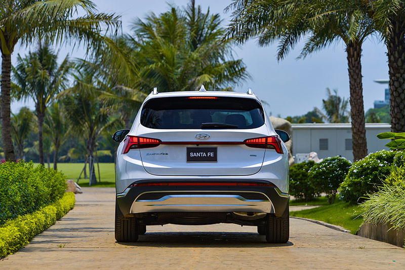 Thiết kế đuôi xe Hyundai Santa Fe 2023 nhận được nhiều đánh giá tích cực.Tuy về tổng thể không thay đổi nhiều so với bản tiền nhiệm, nhưng lại có một số nâng cấp giúp đuôi xe trông sang trọng và thời thượng hơn.