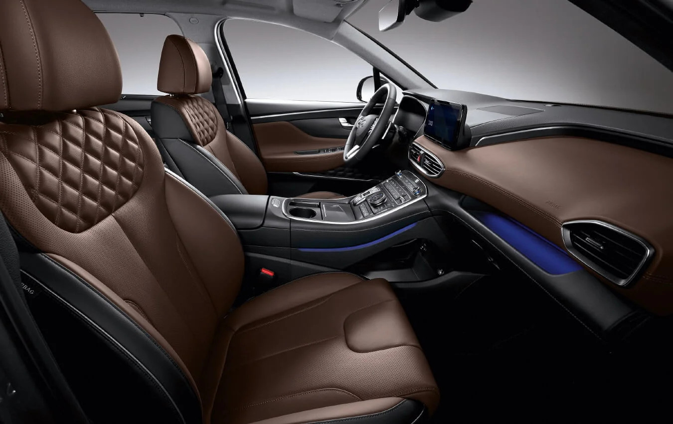 Hyundai Santa Fe 2023 vẫn sử dụng ghế bọc da 2 tông màu cao cấp cho tất cả các phiên bản, cùng với đó là ghế lái chỉnh điện 10 hướng. Tuy nhiên, chỉ 2 phiên bản 2.5 Xăng Cao cấp và 2.2 Dầu Đặc biệt thì mới được trang bị nhớ ghế 2 vị trí, ghế phụ chỉnh điện và sấy/sưởi cho hàng ghế trước.