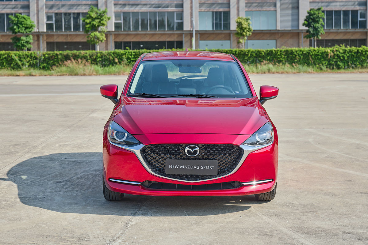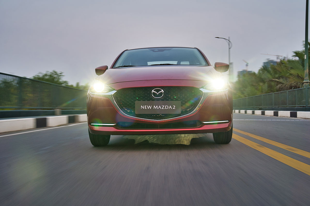 Phiên bản nâng cấp Mazda2 2021 có lưới tản nhiệt dạng tổ ong đồng nhất với các sản phẩm mới của Mazda, cụm đèn pha mỏng và đẹp hơn, cụm đèn sương mù bị loại bỏ. Đèn pha Projector LED trang bị tiêu chuẩn trên tất cả các phiên bản.