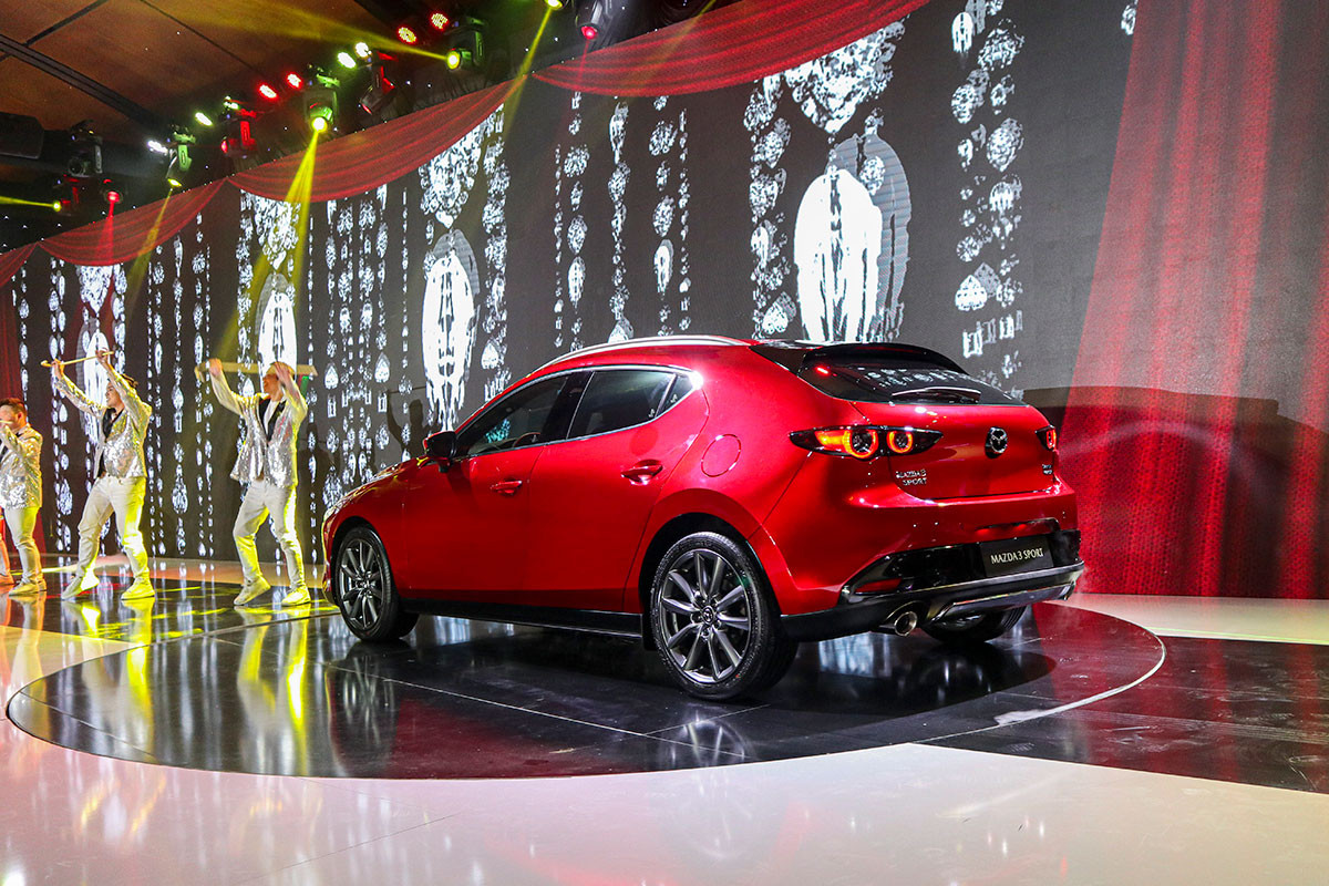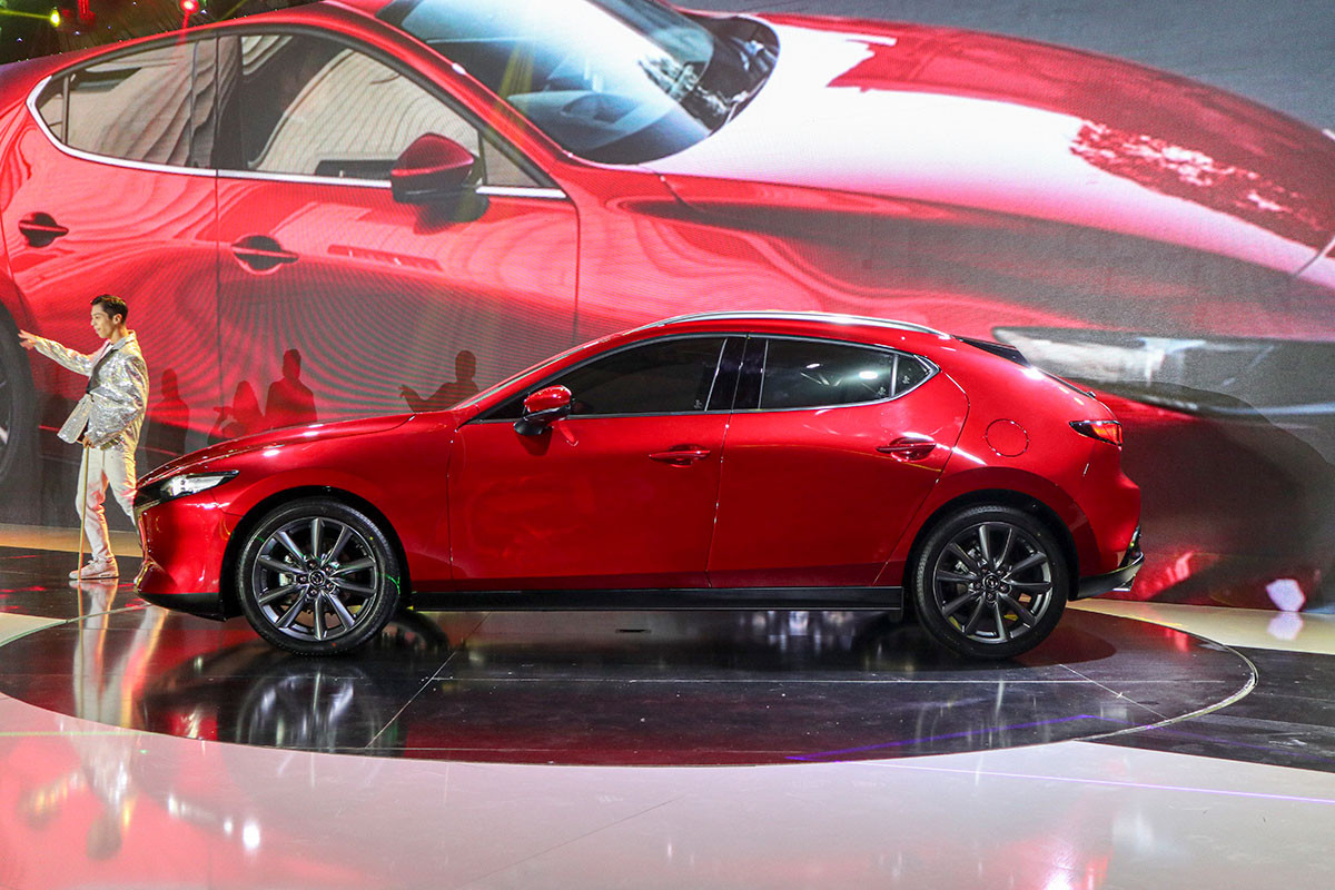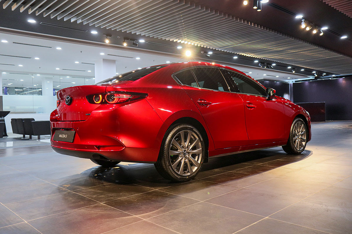 Ở phần thân, các biến thể xe Mazda 3 2.0L sẽ sử dụng loại la-zăng hợp kim 18 inch, đa chấu trong khi đó Mazda 3 1.5L sẽ có 2 lựa chọn la-zăng 16 hoặc 18 inch tuỳ theo từng phiên bản. Điểm nhấn ở phần đuôi xe là cặp đèn hậu thiết kế dạng 2 vòng tròn tách rời cùng ống xả kép nhấn mạnh phong cách thể thao cho Mazda3 thế hệ mới.