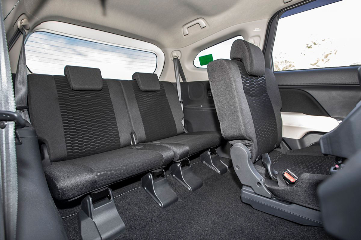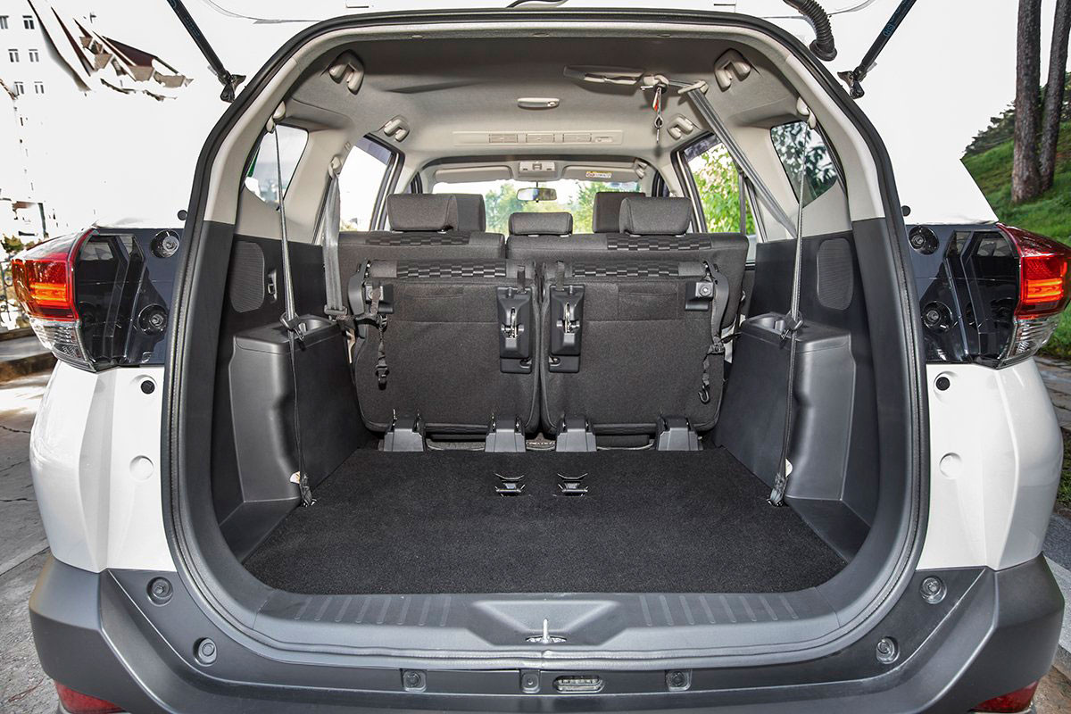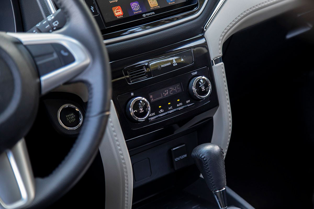 Bên trong, Toyota Rush 2021 sử dụng 2 tông màu đen và be tạo điểm nhấn cho thiết kế nội thất của chiếc xe này. Cách tạo hình của Toyota Rush cũng không quá cầu kỳ, các khu vực tách biệt rõ ràng với ghế ngồi nỉ tiêu chuẩn. Ghế lái chỉnh 6 hướng, ghế hành khách chỉnh 4 hướng, hàng ghế 2 gập 60:40, hàng ghế 3 gập 50:50.