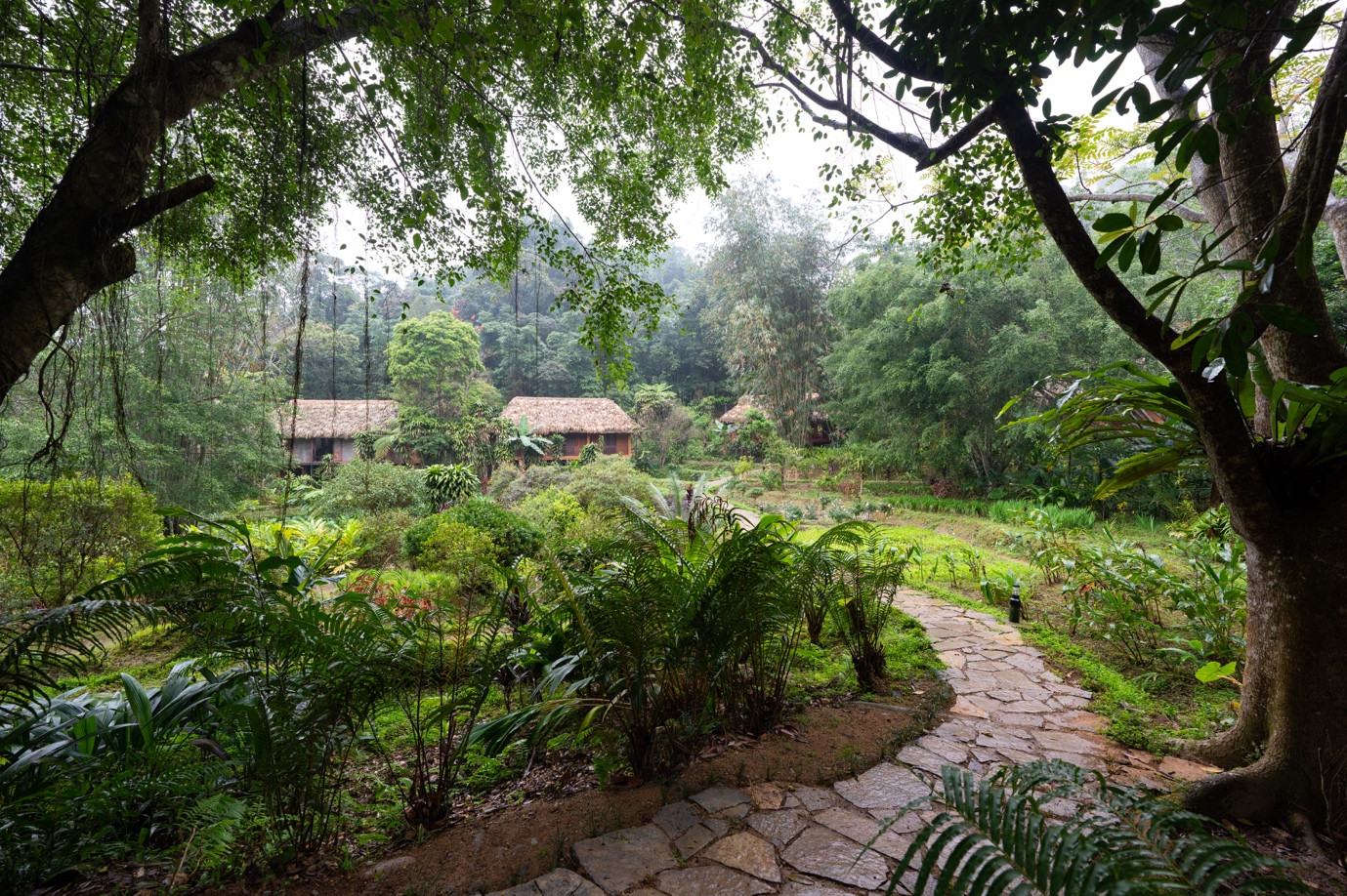 Ngay từ giây phút đầu tiên khi bàn chân bước nhẹ trên cây cầu gỗ, du khách đã như “lạc” vào chốn an nhiên. Chẳng còn ai nhớ hành trình hơn 200km mới trải qua mà thả nhẹ tâm hồn cho mọi giác quan lên tiếng. Ánh mắt tự do tung tăng dõi theo tia nắng vàng ươm lấp ló chiếu qua tán lá rừng, thả đôi tai nghe tiếng suối róc rách thanh âm trong trẻo, mở căng lồng ngực hít thở mùi hương rừng thanh mát, căng tràn sinh khí...