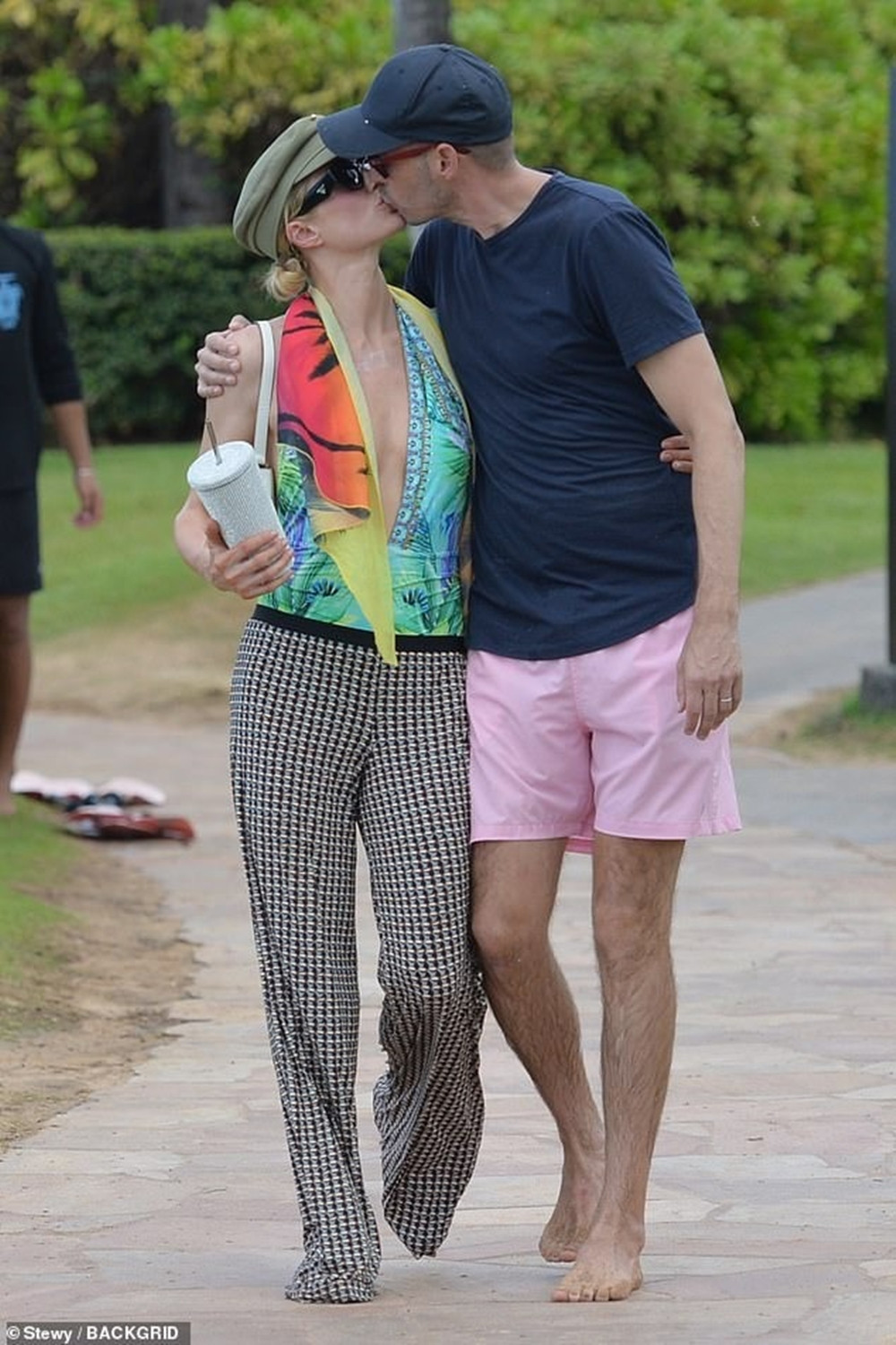 Hình ảnh Paris Hilton cùng chồng con dạo chơi ngoài bãi biển khu nghỉ dưỡng vô tình lọt ống kính phóng viên hôm 12/8. Cô cùng chồng bế con trai 8 tháng tuổi dạo chơi ở biển. Paris Hilton vui vẻ nắm tay, trò chuyện và hôn chồng.