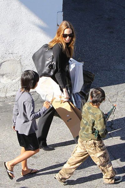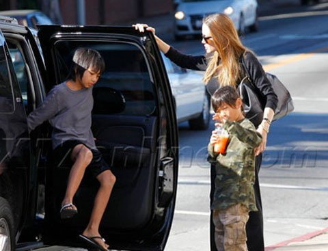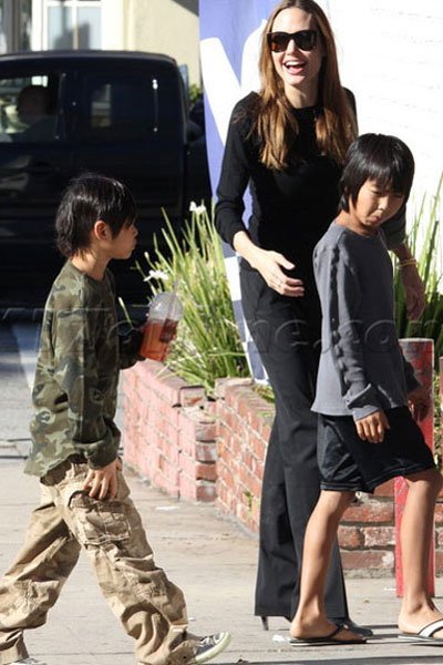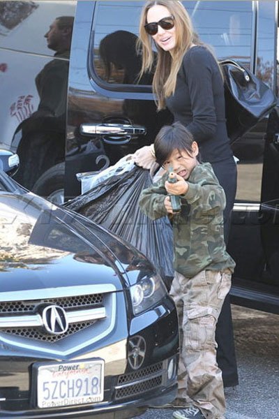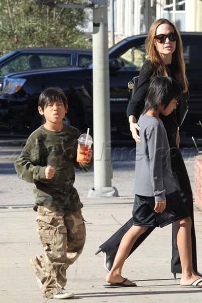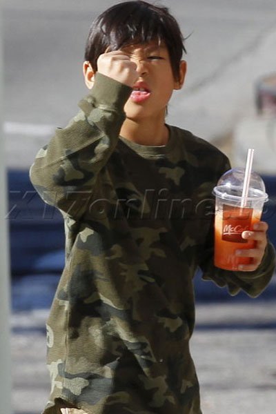 | Trong chuyến mua sắm của ba mẹ con Angelina Jolie ở Hollywood, Mỹ, Pax Thiên đã tỏ ra rất khó chịu với cánh săn ảnh khi mỗi bước đi của ba mẹ con đều bị dõi theo. Pax Thiên luôn lấy tay che mặt |