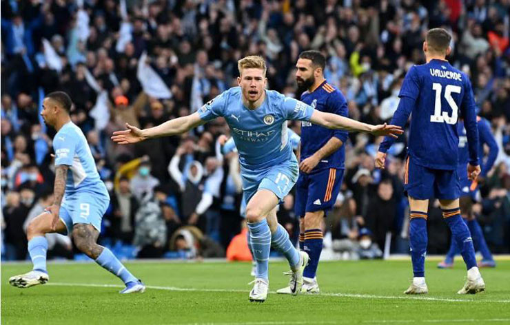 Điều điên rồ đã xảy ra ở Etihad, Man City dẫn trước Real Madrid 2-0 chỉ sau 11 phút, bán kết lượt đi Cúp C1. Nhưng đội bóng từng 13 lần ẵm cúp không sụp đổ domino sau đó, cùng chủ nhà tạo nên màn rượt đuổi hấp dẫn với kết quả 4-3 nghiêng về Man City.
