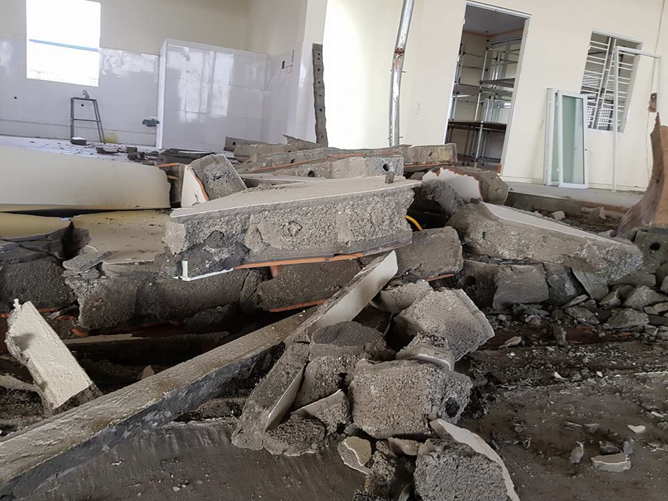 | Dãy nhà khang trang đã bắt đầu được tháo dỡ |