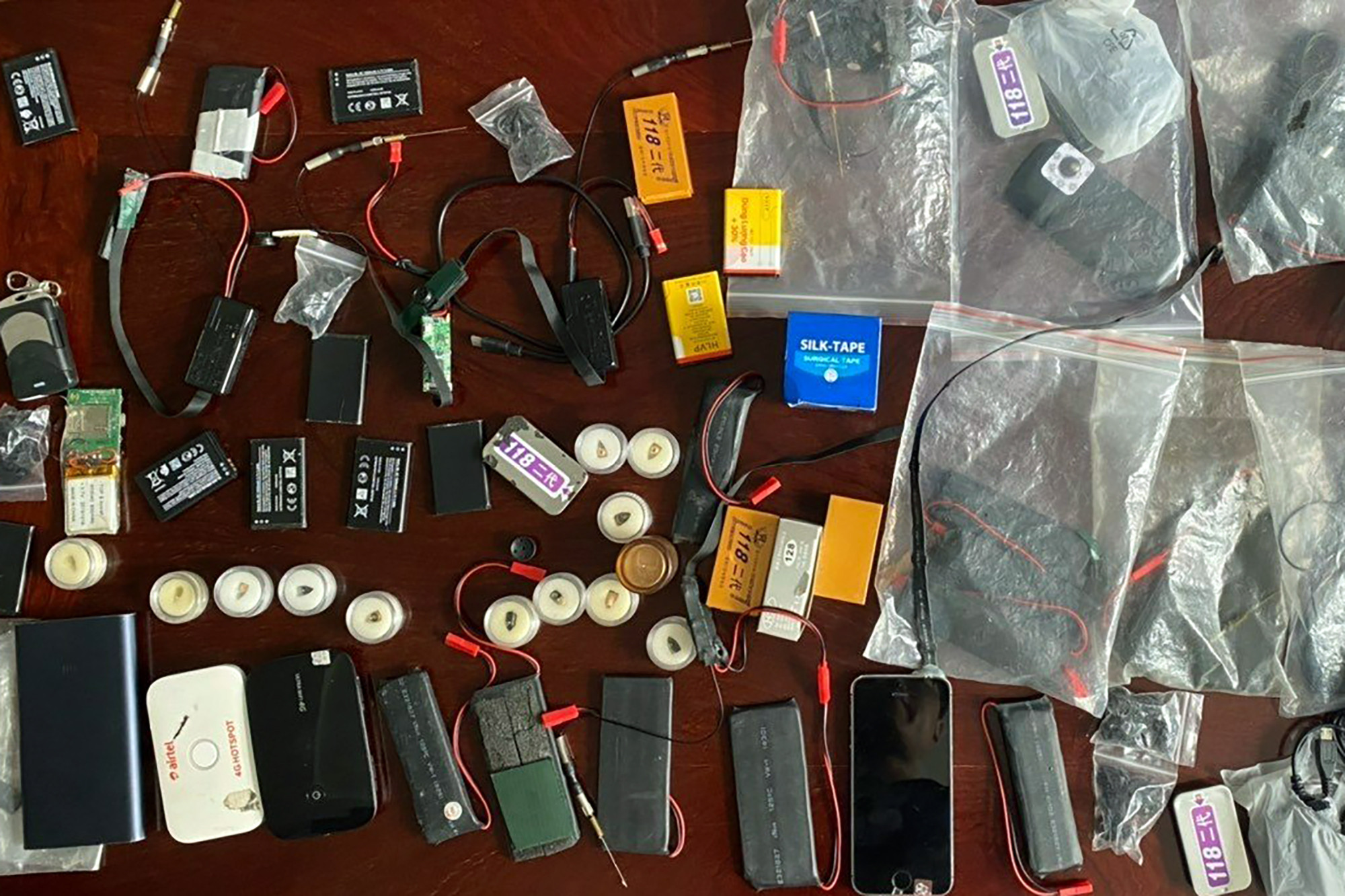 Tại nhà của G. lực lượng chức năng thu 10 bộ thiết bị tai nghe siêu nhỏ, 10 điện thoại Nokia đã được kết nối dây dẫn có gắn 1 micro nhỏ và 10 tai nghe siêu nhỏ dạng hạt từ, kích thước khoảng 2mm cùng hàng trăm linh kiện điện tử để lắp ráp thành các thiết bị ghi âm, ghi hình phục vụ gian lận trong thi cử.