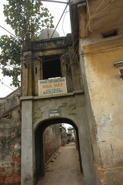 Trên khắp trục đường xương cá chạy dọc ngôi làng cổ, điều dễ nhận thấy nhất đó là những biển hiệu “Trung tâm nhà đất” chen chúc trên các cổng làng cổ.