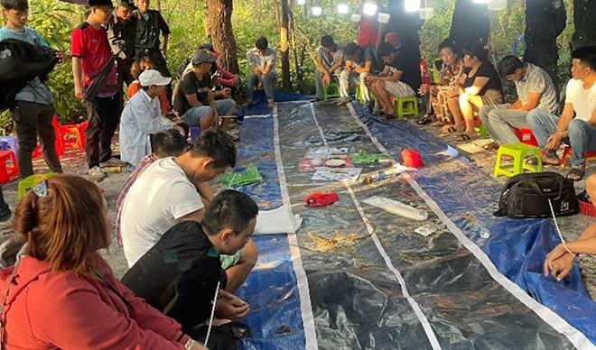 Qua thời gian theo dõi, tổ công tác Phòng Cảnh sát hình sự đã tiến hành vây ráp, bắt quả tang 24 đối tượng đang đánh bạc.