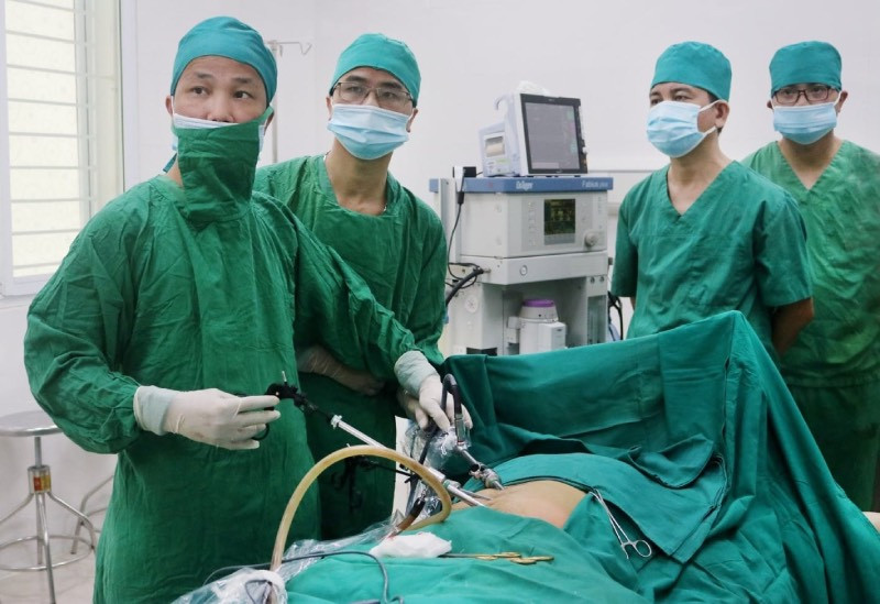 Bệnh nhân 65 tuổi vào cấp cứu vì đau nhiều, sờ thấy khối u ở bụng. Bác sĩ phát hiện bệnh nhân bị sỏi thận biến chứng ứ mủ, ứ nước. Sau làm xạ hình, bác sĩ đánh giá mất chức năng thận, thận đã giãn độ IV. Ê-kíp phẫu thuật nội soi cắt bỏ một bên thận.
