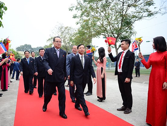 Phái đoàn cấp cao của Triều Tiên do ba Phó chủ tịch Đảng Lao động Triều Tiên là các ông Ri Su Yong, Kim Pyong Hee, O Su Yong dẫn đầu đã được đón tiếp bởi Thượng tướng Bế Xuân Trường, Thứ trưởng Bộ Quốc phòng cùng lãnh đạo Tập đoàn Viettel. |