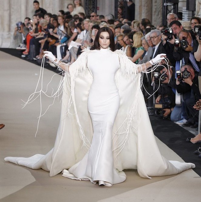 Thường xuyên có mặt tại hàng ghế khán giả của nhiều show diễn thời trang cao cấp nhưng đây là lần đầu tiên nữ diễn viên 31 tuổi xuất hiện với vai trò người mẫu trình diễn. Ngôi sao giàu thứ 3 làng giải trí Trung Quốc được Stephane Rolland chọn là người mẫu cuối cùng kết thúc phần trình diễn bộ sưu tập mùa mới.