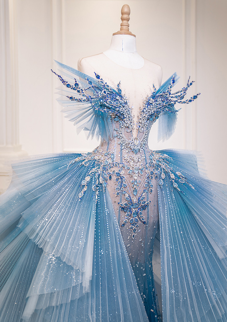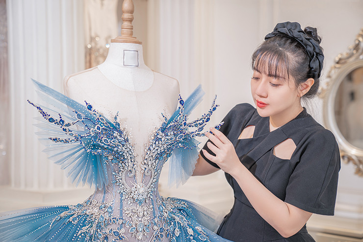 Sau khi gây ấn tượng với vai trò vedette tại Tuần lễ thời trang Paris (Pháp), mới đây ngôi sao quốc tế Phạm Băng Băng tiếp tục tạo bất ngờ khi xuất hiện trên trang bìa L’OFFICIEL - tạp chí được tôn vinh là “kinh thánh của thời trang thế giới”.Điều đặc biệt, nữ hoàng giải trí Hoa ngữ diện trang phục của NTK Phạm Đăng Anh Thư. 'Ice Phoneix- Phượng Hoàng Băng' là ý tưởng và tên gọi của bộ váy dạ hội lộng lẫy mà Phạm Đăng Anh Thư thiết kế “đo ni đóng giày” cho Phạm Băng Băng. Trang phục có giá lên tới 600 triệu đồng. Chiếc váy mang tính biểu tượng như sự hồi sinh từ tro tàn của nữ minh tinh, đánh dấu sự trở lại mạnh mẽ của siêu sao Hoa ngữ sau scandal ồn ào. Thiết kế có màu xanh bạc ombre với điểm nhấn là hoa văn đính kết bằng đá, pha lê cầu kỳ tinh tế, toát lên khí chất thanh tao, băng thanh ngọc khiết như chính cái tên của cô.Từ đầu năm 2023, ê-kíp của Phạm Băng Băng đã liên lạc với NTK Phạm Đăng Anh Thư để đặt riêng chiếc váy dạ hội lộng lẫy, ý nghĩa dành cho buổi chụp hình.Chi tiết kỳ công nhất phải nhắc tới là phần đá đính chuyển màu khối nổi. Ê-kíp đã phải chỉnh sửa, pha phối lại nhiều lần để tạo được hiệu quả tinh xảo như một món trang sức long lanh trên ngực áo. Các nghệ nhân thủ công thực hiện suốt 40 ngày mới hoàn thành. Thân váy đuôi cá corset cùng kỹ thuật tạo khối xếp li 3D thời thượng khiến người mặc trở nên kiêu sa nhưng có sức hút ma mị vô cùng.