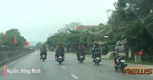 | Video clip ghi lại cảnh 5 xe máy dàn hàng ngang, không đội mũ bảo hiểm chạy băng băng trên Quốc lộ 1A. (Nguồn: Hồng Minh, Otofun) |