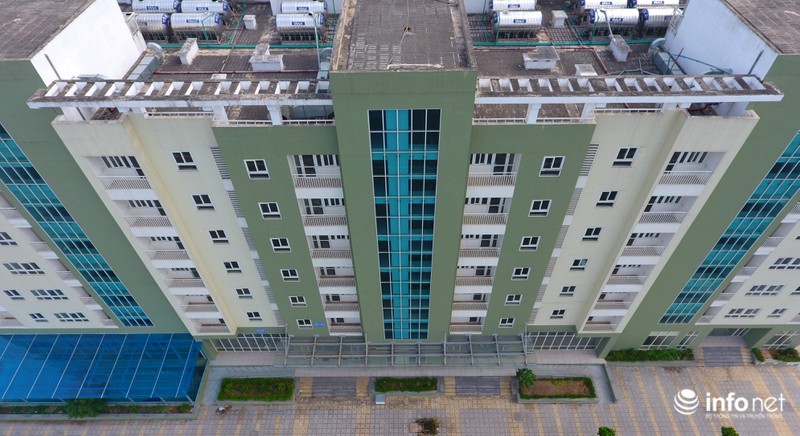 Khu nhà chung cư cao tầng bị đang bỏ trống, cửa đóng then cài và đang có dấu hiệu xuống cấp.