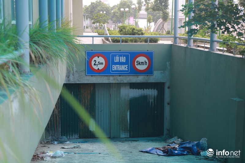 Cửa tầng hầm để xe khóa kín và thành nơi vứt rác của các hộ dân xung quanh khu vực này.