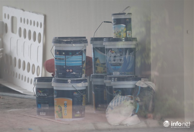 Chung cư không có người ở. Sảnh tầng 1 được tận dụng cho công nhân các công trình khác thuê ở trọ và chứa đồ.