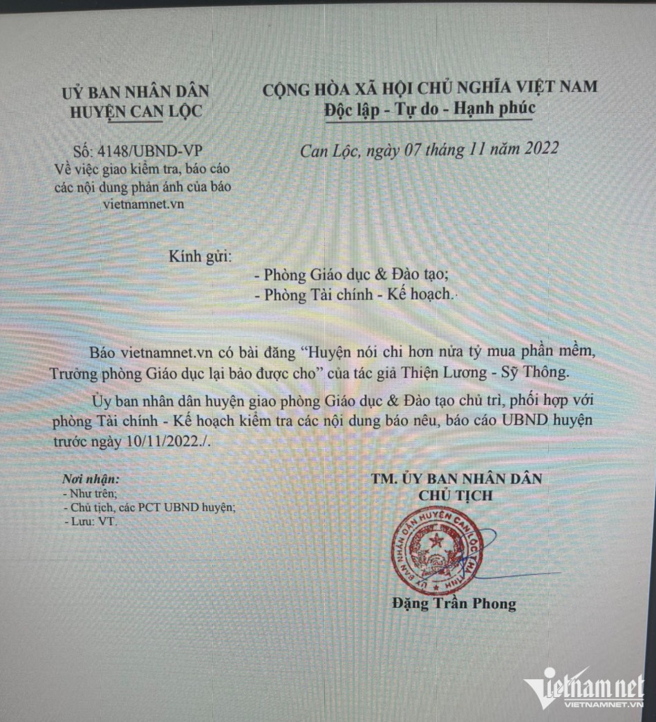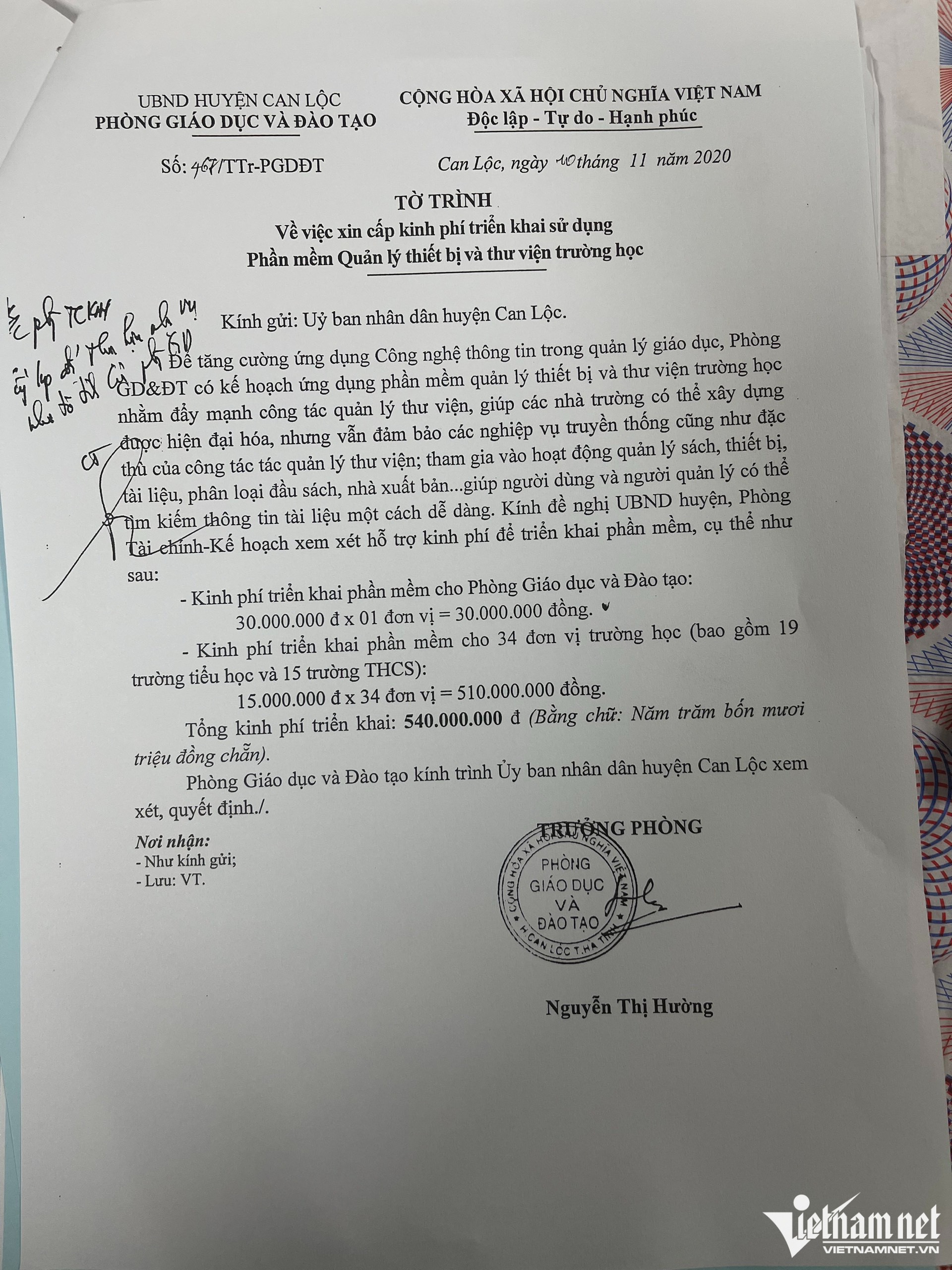 Tại huyện Đức Thọ, có 35 trường (10 trường THCS và 25 trường tiểu học), Can Lộc là 34 trường (19 trường tiểu học và 15 trường THCS) đã mua phần mềm với giá 15 triệu đồng/trường.