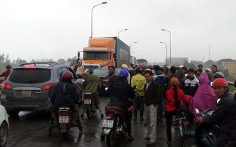 | Nạn nhân bị xe ben va quệt giữa cầu Nghèn và tử vong sau đó, khiến giao thông