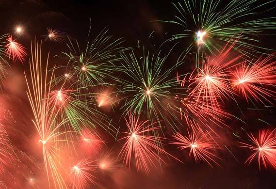 Pháo hoa rực rỡ sắc màu ở Hồ Gươm. (Ảnh: Phạm Hải)