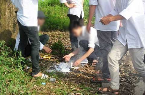 | A2: Cách xa phía cổng Trường THPT Tân Lập vẫn tràn lan "phao thi". Ảnh: Thanh Niên |