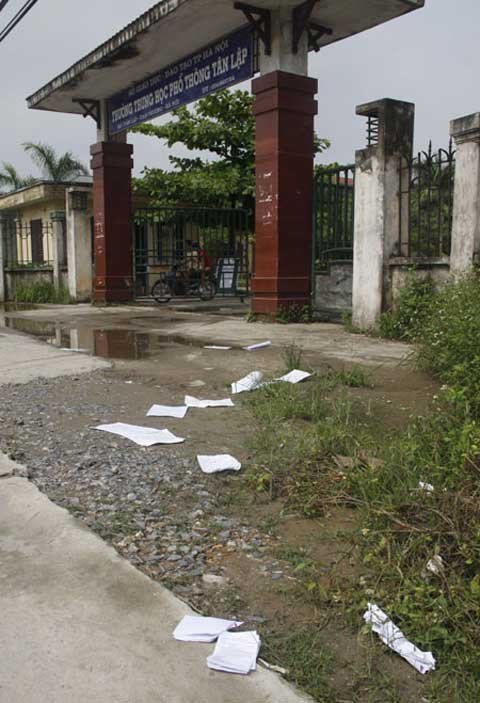 | Phao thi “xả” tràn lan sau buổi thi môn Lịch sử tại Nghê An. Ảnh Cao Nam |
