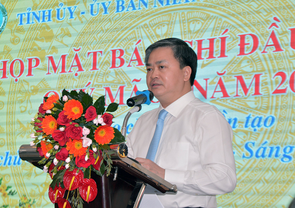 Nhân dịp đầu năm mới, thay mặt Tỉnh ủy, UBND tỉnh, tôi xin chúc toàn thể các đồng chí , quý vị đại biểu về dự buổi họp mặt hôm nay mạnh khỏe, hạnh phúc, thành công trong công tác cũng như cuộc sống.