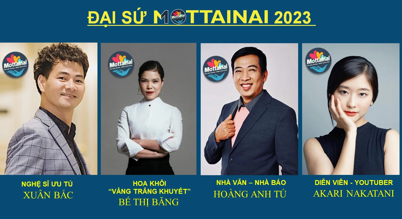 4 Đại sứ của Chương trình Mottainai 2023 là: MC-NSƯT Xuân Bắc; Hoa khôi "Vầng trăng khuyết" Bế Thị Băng - cô gái bị mất 1 chân do tai nạn giao thông; nhà văn - nhà báo Hoàng Anh Tú và ca sĩ, diễn viên Akari Nakatani (Nhật Bản).