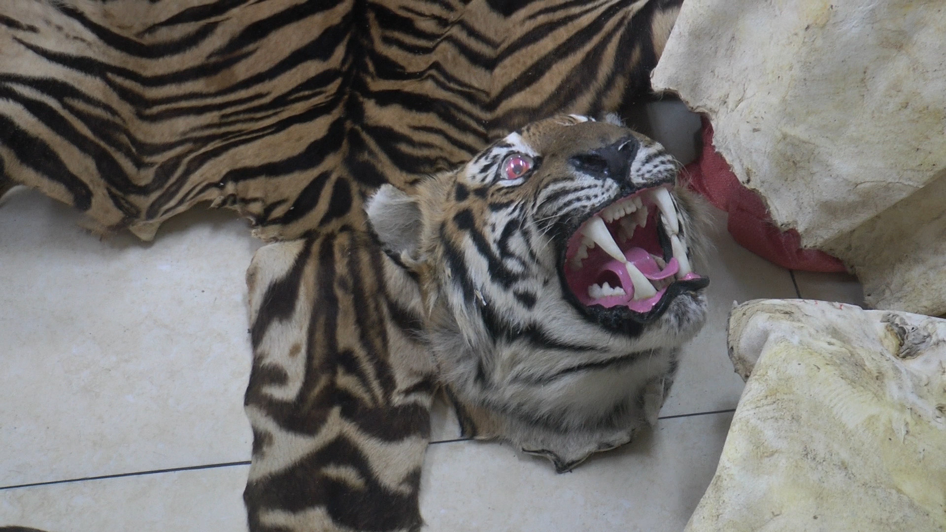 Tiếp cận kiểm tra, cơ quan chức năng phát hiện trên xe chứa 3 bộ da cùng 1 cặp đầu nghi là sản phẩm từ Hổ.