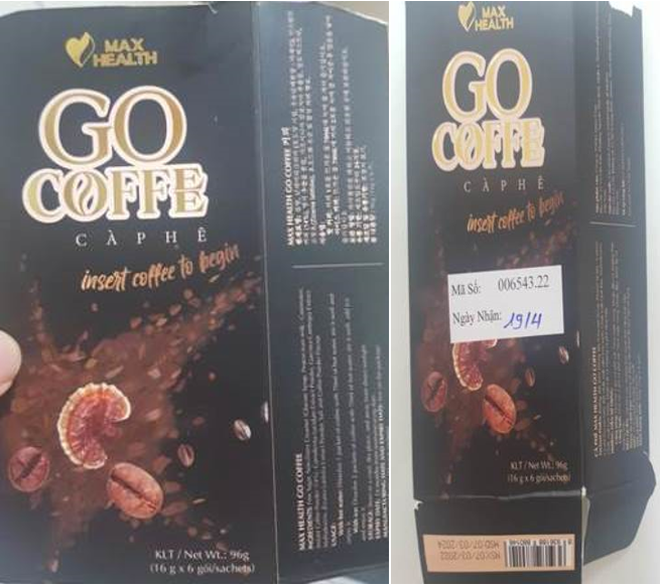 Theo đó, cơ quan chức năng đã phát hiện 4 mẫu sản phẩm Max health to go coffee Cà phê insert coffee to begin, có các ngày sản xuất, hạn sử dụng lần lượt là: 7/3/2022 - 7/3/2024; 18/3/2022 - 18/3/2024; 25/3/2022 - 25/03/2024; 20/4/2022 - 20/4/2022. Các sản phẩm này đang lưu thông trên thị trường, có chứa Sibutramin.