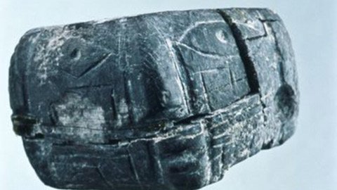 | Chiếc nhẫn đá cỡ nhỏ mà các nhà khảo cổ tìm thấy trong ngôi mộ 1300 tuổi ở tầng trên. Ảnh: Daily Mail. |