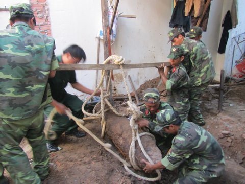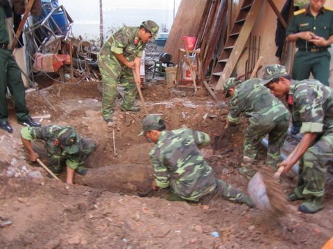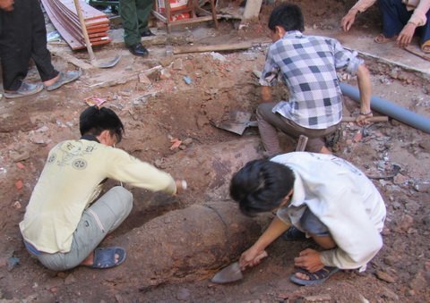 | Công nhân phát hiện hai quả bom. |