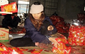 Kinh doanh sai địa điểm cấp phép, không có giấy chứng nhận đủ điều kiện VSATTP, song xưởng sản xuất bim bim của anh Nguyễn Chí Bình (SN 1976), ở xóm Đoàn Kết, xã Dương Liễu, huyện Hoài Đức, Hà Nội vẫn hoạt động lâu nay. Sự việc vừa bị Đội 6 Phòng Cảnh sát PCTP về môi trường, Đội QLTT số 12 phát hiện sáng qua (24/12).