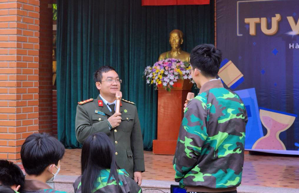Trao đổi với các học sinh về tác hại của chất kích thích, đặc biệt thuốc lá điện tử, Đại uý Nguyễn Tùng Anh- Bí đoàn thanh niên, Công an huyện Đông Anh, chia sẻ trong thời gian qua trên địa bàn xuất hiện một số trường hợp học sinh tại các trường phổ thông bị lôi kéo, dụ dỗ sử dụng trái phép chất ma túy và gia tăng tình trạng học sinh sử dụng thuốc lá điện tử.