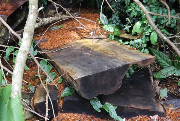 Được công an thuê vận chuyển gỗ tang vật về kho chờ xử lý, ba đối tượng đã phối hợp chặt luôn gỗ trong Khu bảo tồn thiên nhiên để chở ra ngoài.