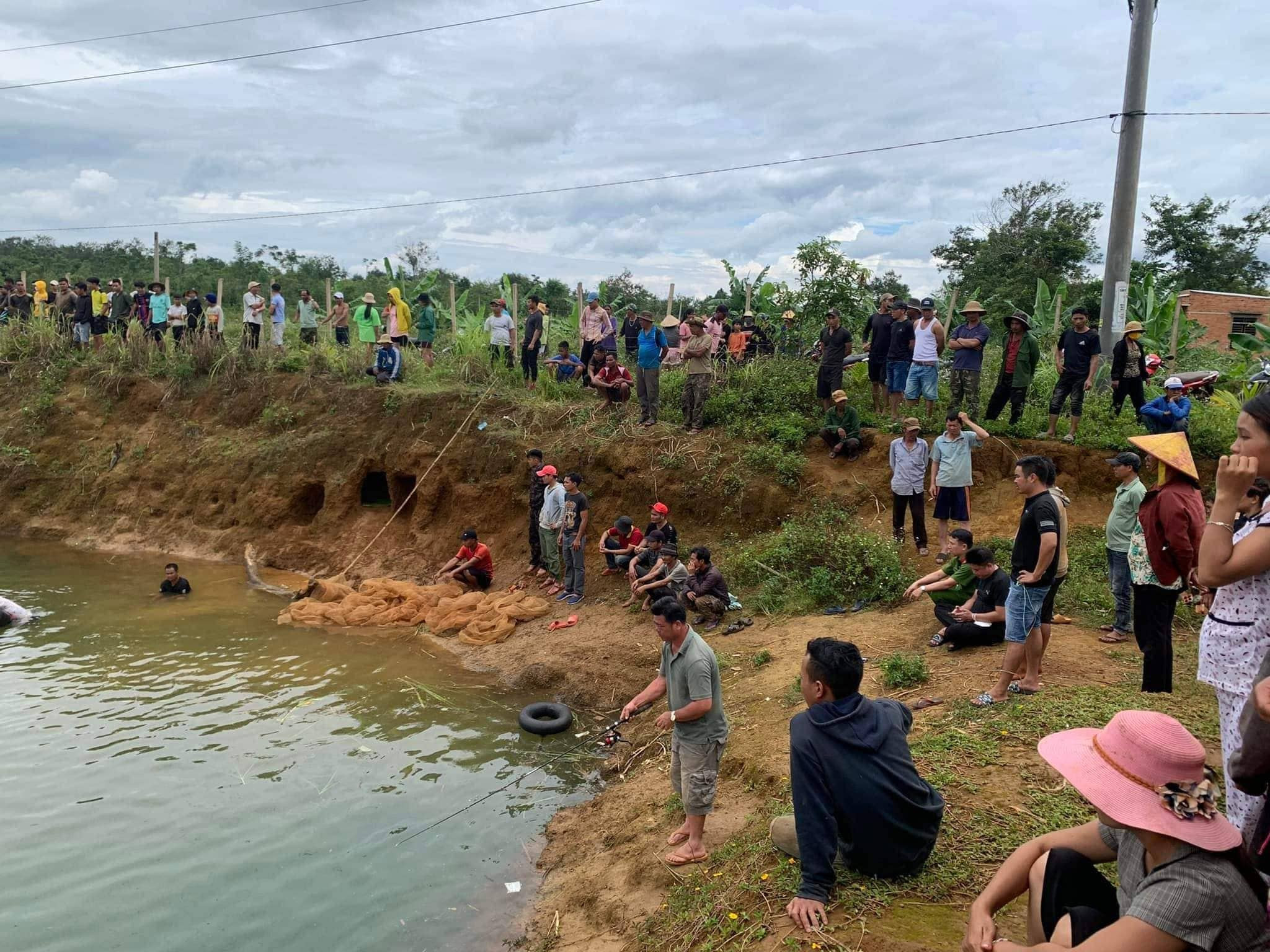 Ngay sau đó, người dân và lực lượng chức năng đã tiến hành tìm kiếm thì phát hiện và trục vớt được thi thể hai cháu dưới hồ nước lên.