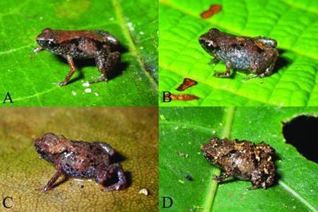 Loài ếch Paedophryne dekot (ảnh A,B) và Paedophryne verrucosa (ảnh C,D) là những loài ếch nhỏ nhất trên thế giới hiện nay. |