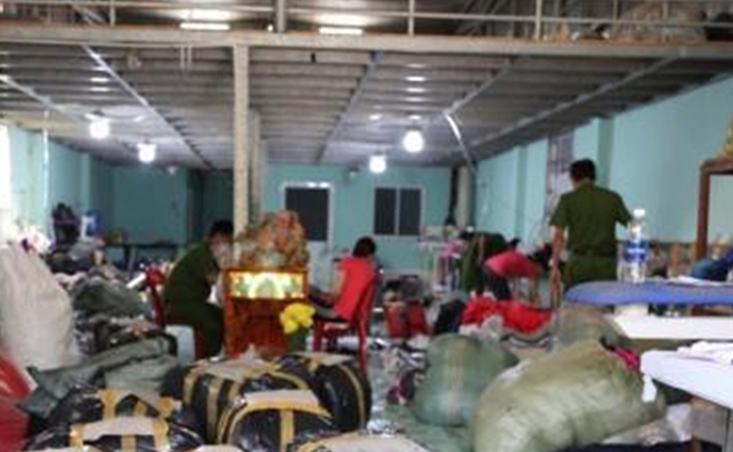 Lực lượng Công an đã lập biên bản, thu giữ được 19.630 chiếc quần, áo thành phẩm có in logo các thương hiệu như: Nike, Adidas, Icard, cùng nhiều máy may, máy in, máy ép nhãn hiệu; 1.200 chiếc quần, áo chưa thành phẩm. Ngoài ra, Công an còn phát hiện, thu giữ tại kho của cơ sở này 10.578 kg vải cây nguyên liệu.