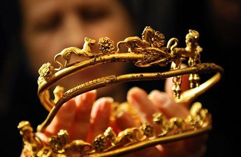 | Mũ miện bằng vàng được trang trí hình con vật. |