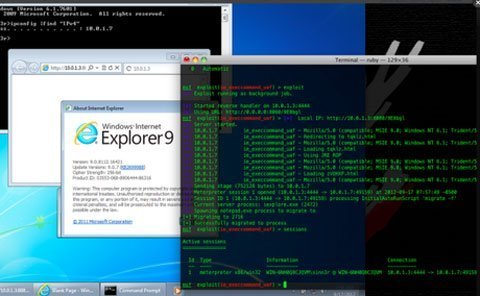 | Ảnh chụp màn hình cho thấy một cuộc tấn công thành công chống lại Windows 7 chạy IE 9. |