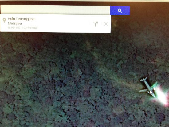 Hôm thứ Ba (11/3) đánh dấu ngày thứ 4 trong cuộc tìm kiếm chiếc Boeing 777 số hiệu MH370 bị mất tích của hãng hàng không Malaysia Airlines. Nhiều cư dân mạng cho rằng đã tìm thấy tung tích của MH370 khi xem hình ảnh vệ tinh trên dịch vụ bản đồ Google Maps.