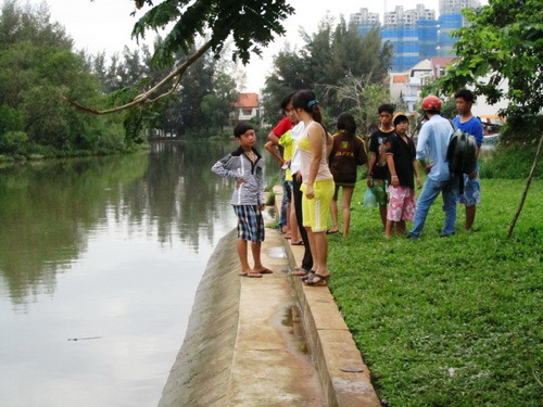 Vào thời điểm trên, trong lúc tắm, một số em nhỏ đã phát hiện một bao tải bốc mùi hôi thối trôi trên kênh nên đã kéo vào bờ.