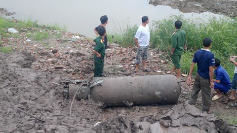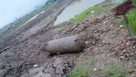 Anh Trần Anh Tuấn một cán bộ đang trực tiếp thi công tại công trường cho biết, đây là một quả bom nâng đầu tên lửa, có độ dài 2,5m, đường kính 60cm và nặng khoảng 2 tấn.