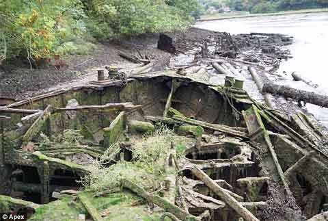 Chiếc hàng không mẫu hạm cổ nhất thế giới, tiền thân của những con tàu khổng lồ ngày nay của hải quân, vừa được tìm thấy đang nằm gỉ sét bên cạnh bờ sông Thames, Anh.