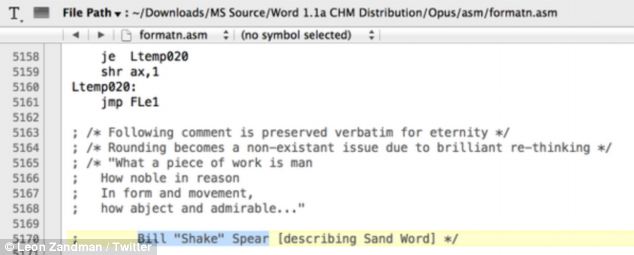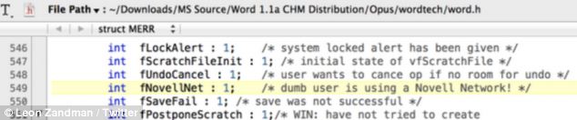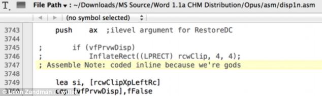 Câu chuyện đùa cợt trong mã máy tính này bao gồm việc các lập trình viên xem họ là "thần thánh", gọi người dùng là "ngu xuẩn" và cả những bình luận về Bill Gates – cùng với việc sử dụng từ "f**k" – một từ có ý nghĩa rất bậy bạ mà trang Daily Mail chỉ dám viết tắt chứ không viết đầy đủ cả từ.