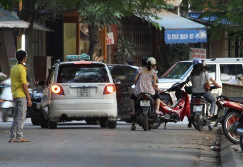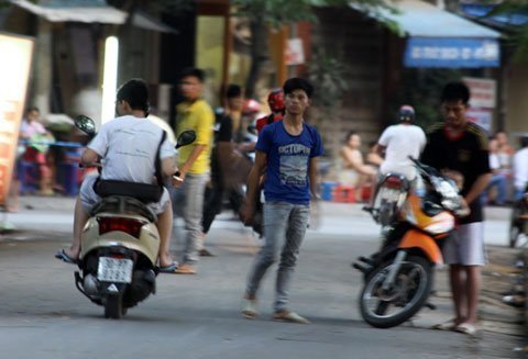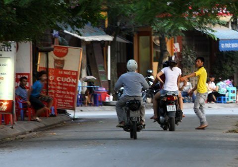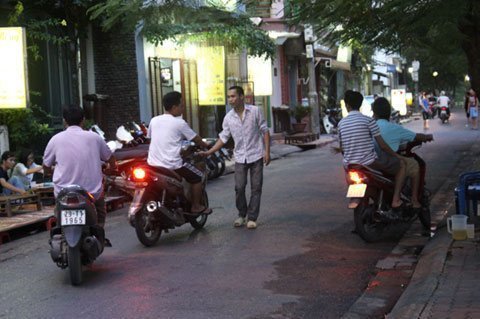 vỉa hè, đứng giữa đường sẵn sàng chặn xe qua lại để mời chào, chèo kéo